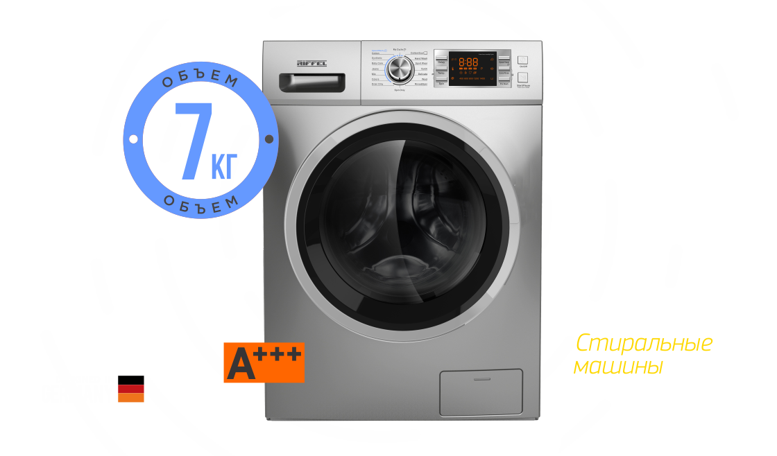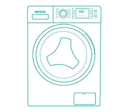 Стиральные машины большой вместимости Riffel оснащены дверцей широкого диаметра. Благодаря такой широкой двери даже самая большая одежда - одеяло, постельное белье, халаты - легко заполняются и выгружаются из машины.