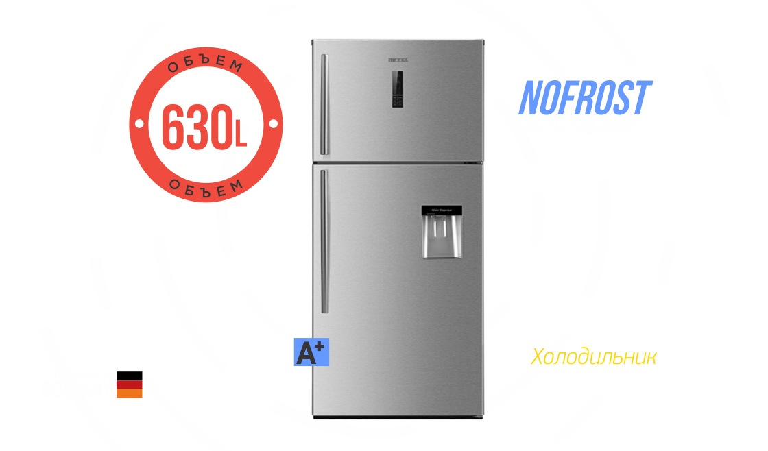 Инновационная технология от Riffel NoFrost более развита, чем обычный холодильник, она равномерно распределяет холодный воздух между холодильной и морозильной камерой, чтобы предотвратить образование кристаллов льда. Теперь не нужно будет растапливать лед в холодильнике вручную.