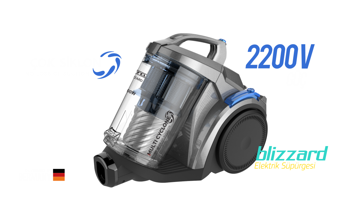 Riffel Çok Siklonlu elektrik süpürgesi, tozu yüksekte tutar ve dışarıya atmaz. Toz toplama kabında biriken tozu kolayca boşaltabilir ve temizleyebilirsiniz